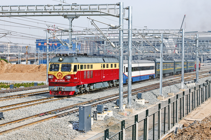 3月29日,55002次专业检测列车从建设中的西安东站驶出,经西十高铁开往湖北郧西站。(刘翔摄)